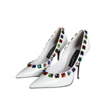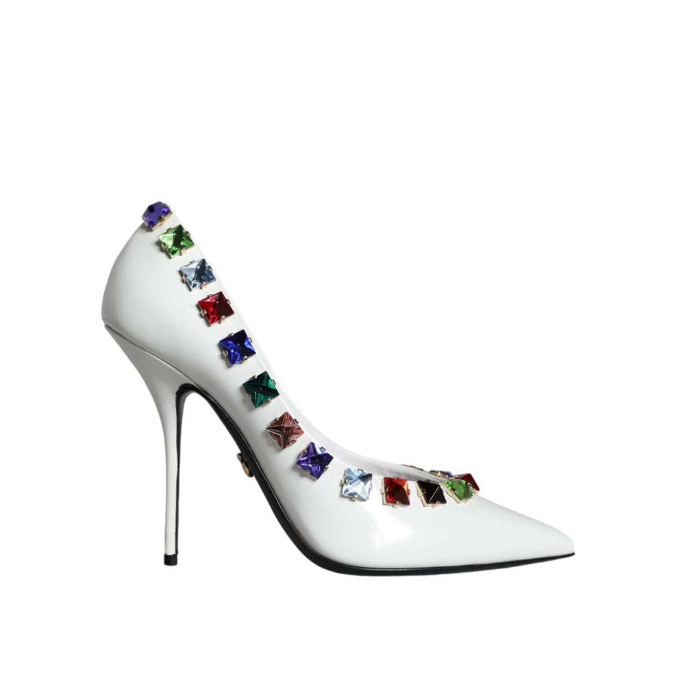 Dolce & Gabbana White Crystals Leather High Heels Pumps Shoes