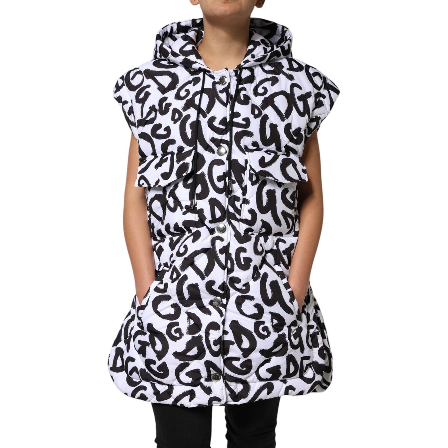 Dolce & Gabbana White DG Mania Hooded Sleeveless Puffer Jacket