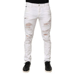 Dolce & Gabbana White Distressed Ripped Denim Trouser Jeans