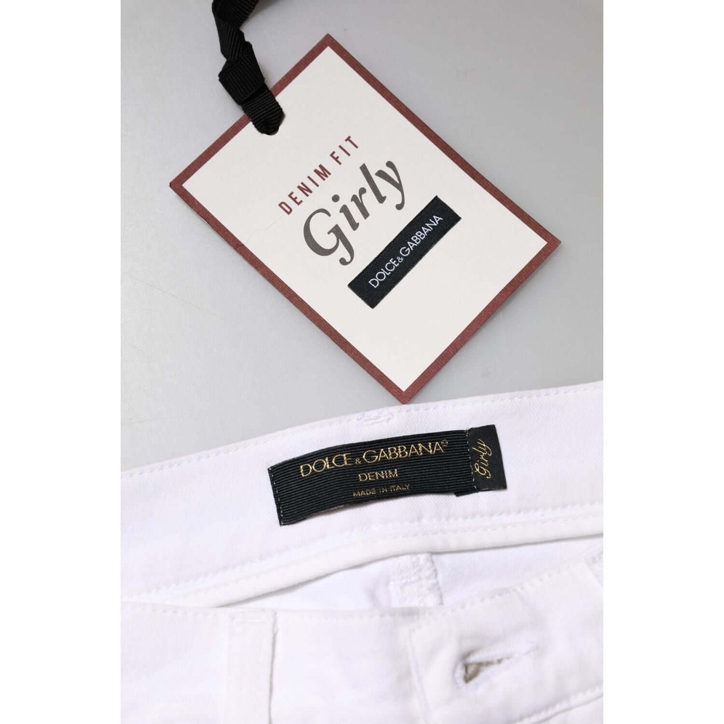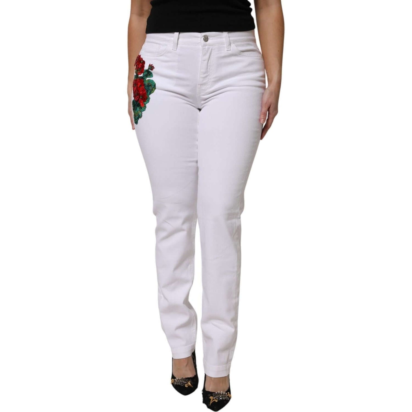 Dolce & Gabbana White Floral Sequined GIRLY Denim Jeans