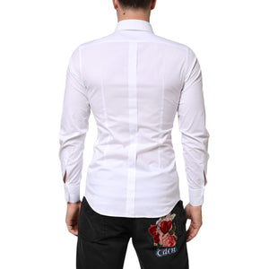 Dolce & Gabbana White GOLD Cotton Long Sleeves Dress Men Shirt