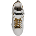 Dolce & Gabbana White Gold Leather Low Top Sneakers Shoes