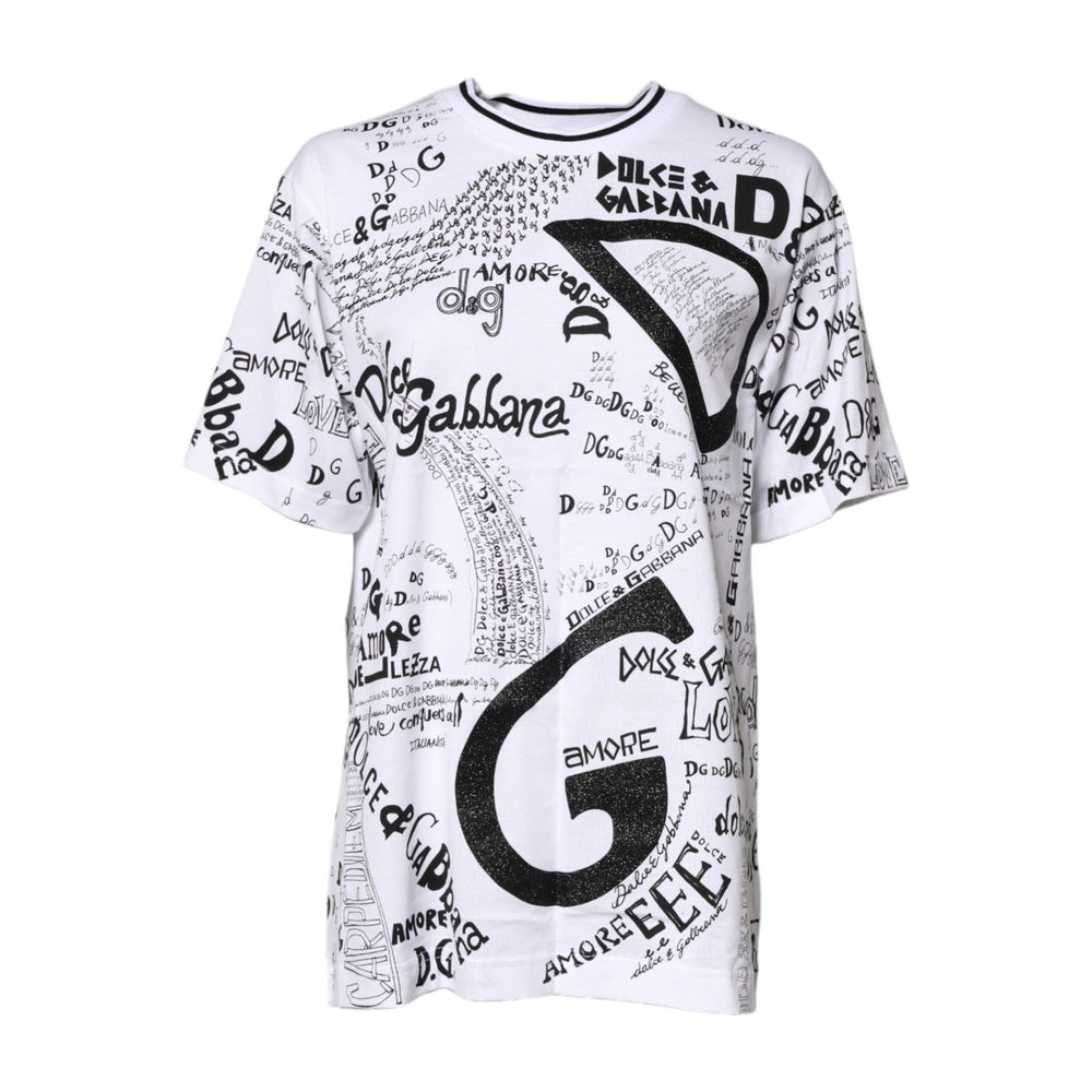 Dolce & Gabbana White Graffiti Print Cotton Crew Neck T-shirt
