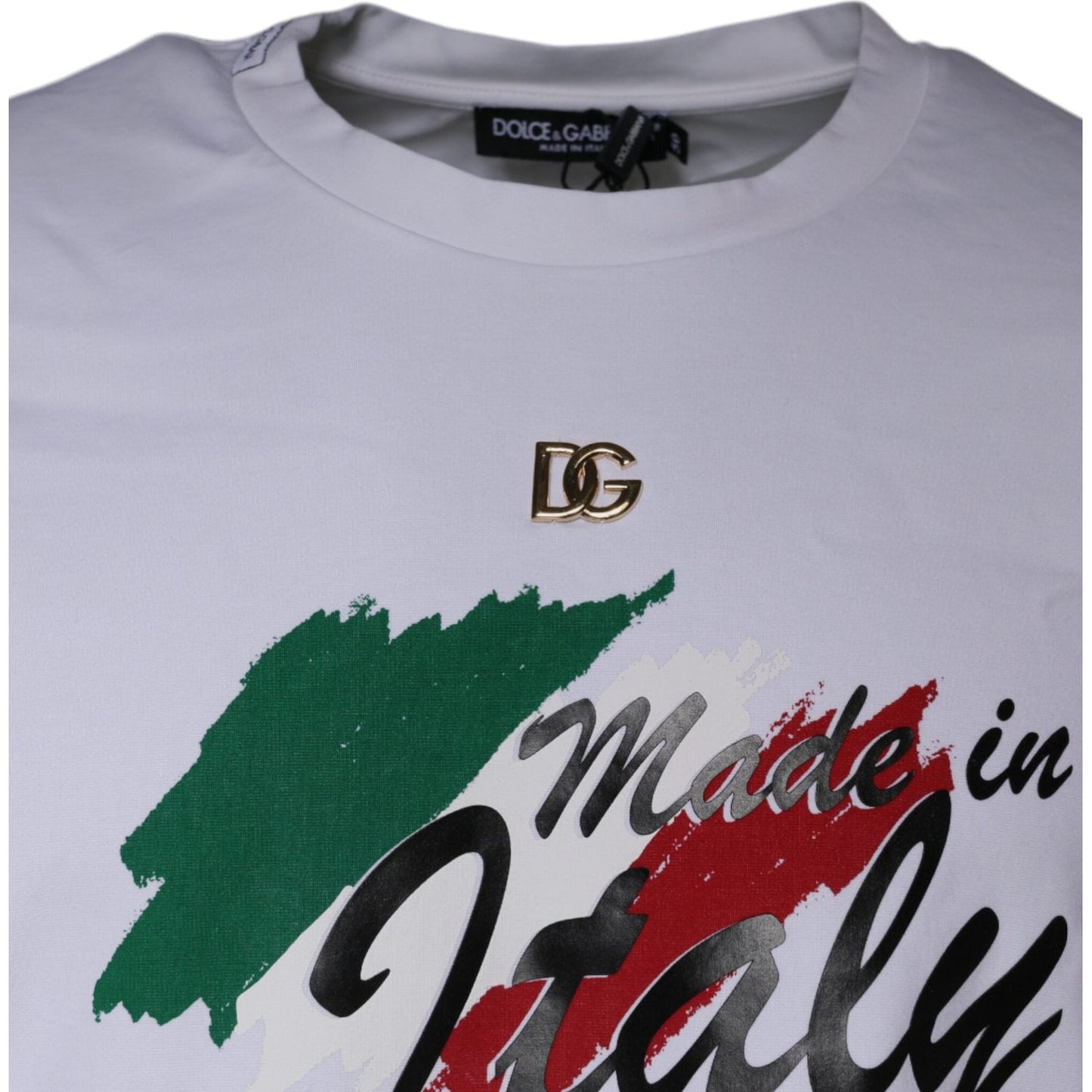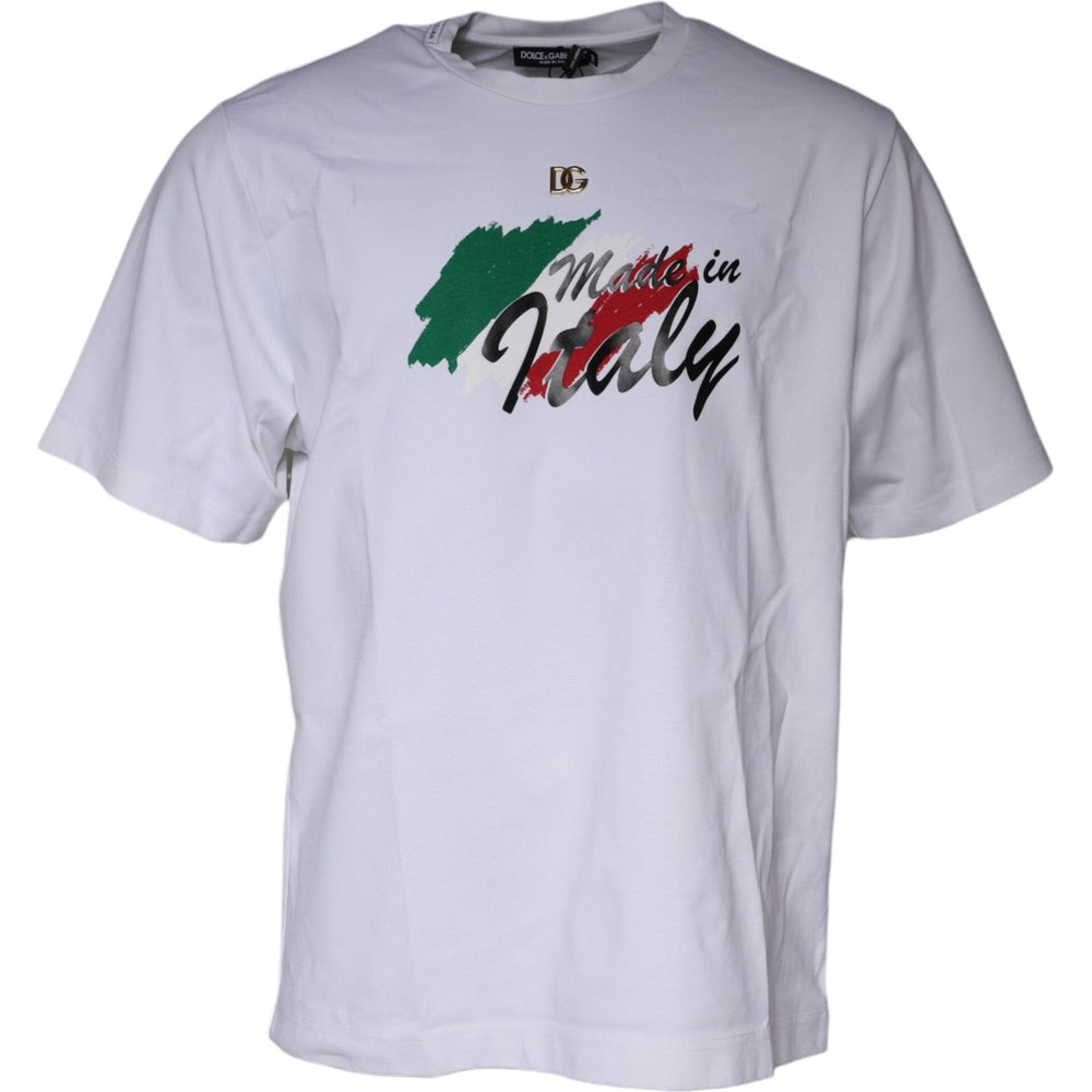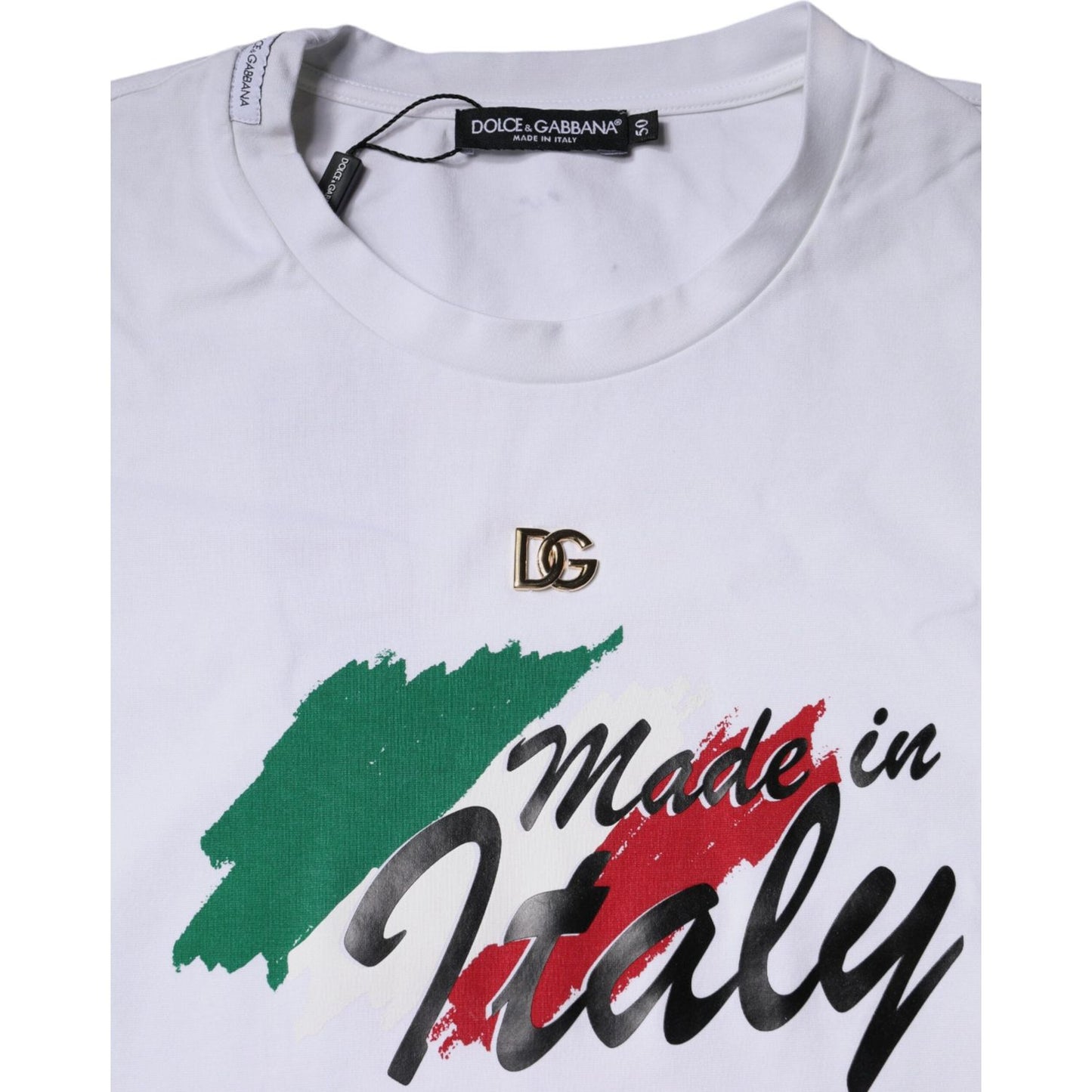 Dolce & Gabbana White Graphic Print Cotton Crew Neck T-shirt