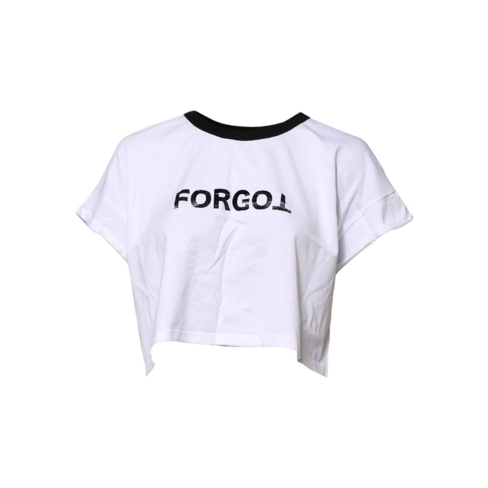 Dolce & Gabbana White Graphic Print Crew Neck Cropped T-shirt