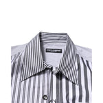 Dolce & Gabbana White Gray Striped Cotton Men Casual Shirt