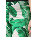 Dolce & Gabbana White Green Leaf High Waist Pants