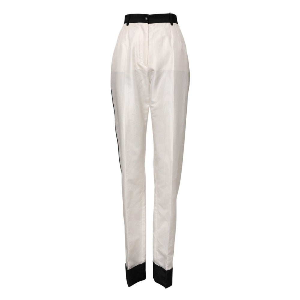 Dolce & Gabbana White High Waist Straight Dress Trouser Pants