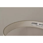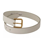 Dolce & Gabbana White Leather Gold Logo Engraved Metal Buckle Belt