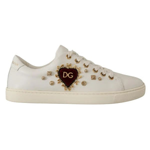 Dolce & Gabbana White Leather Gold Red Heart Sneakers Shoes