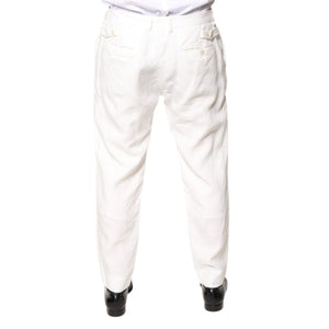 Dolce & Gabbana White Linen Mid Waist Men Dress Pants