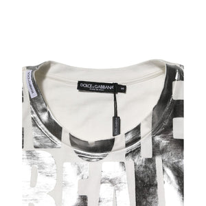 Dolce & Gabbana White Metallic Print Cotton CrewNeck T-shirt