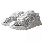Dolce & Gabbana White NS1 Canvas Leather Embellished Sneakers Shoes