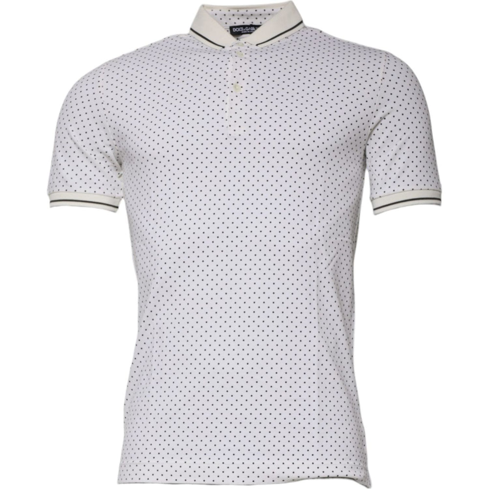 Dolce & Gabbana White Polka Dot Cotton Collared Polo T-shirt