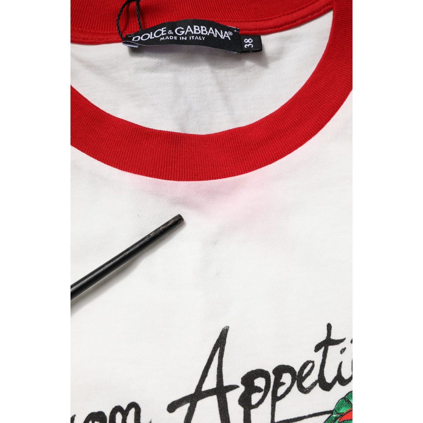 Dolce & Gabbana White Printed Round Neck Cropped Top T-shirt