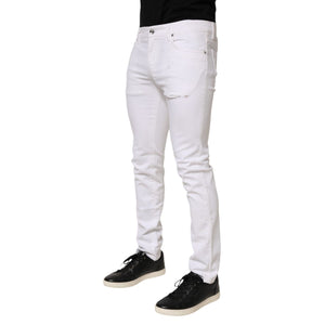 Dolce & Gabbana White Ripped Cotton Skinny Men Denim Jeans