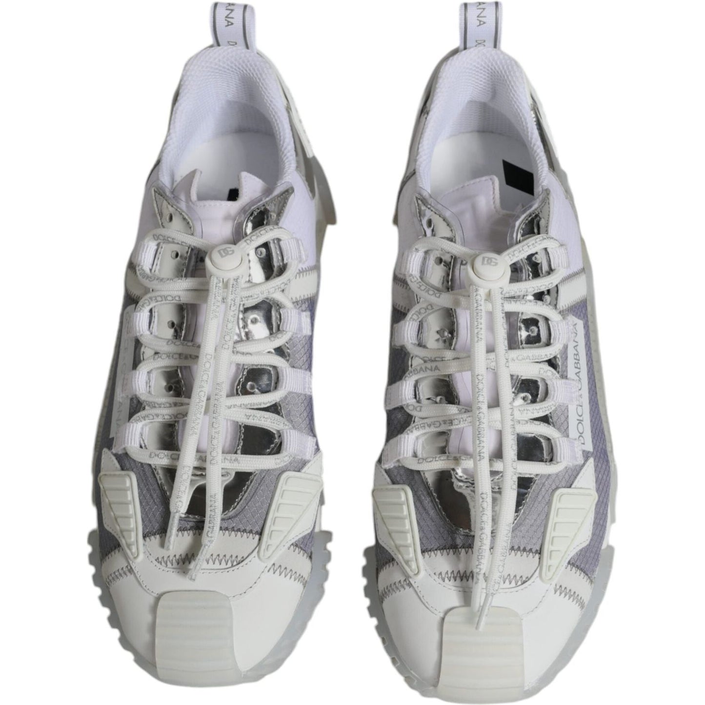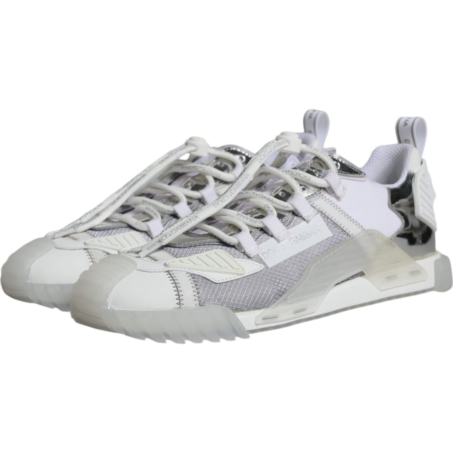 Dolce & Gabbana White Silver Low Top NS1 Sneakers Shoes