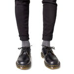 The Dr. Martens 1461 Mono Black Smooth men’s dress shoes are a perfect blend of style and comfort. Made with a 100% leather upper, these shoes offer a sophisticated look and long-lasting durability. The inner lining is composed of a combination of leather and fabric, ensuring a comfortable and breathable fit. The 100% PVC sole provides good grip and resistance, making them suitable for any occasion, whether for formal events or everyday use. The classic design and meticulous finishes make these shoes a must-have for every fashion-conscious man.