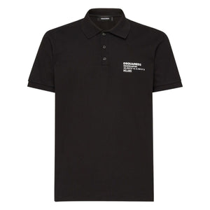 black cotton polo collar short front button fastening logo patch at the chest short sleeves straight hem Logo cotton polo shirt Size and Fit - This piece fits true to size. We recommend you get your regular size. Model is 1,84m / 6ft 1in wearing size M