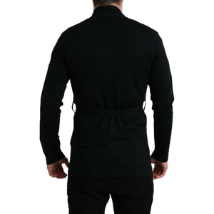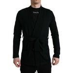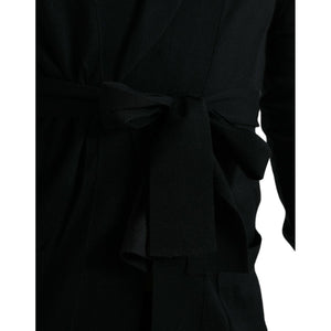 Dolce & Gabbana Black Cashmere Long Sleeves Belted Wrap Robe
