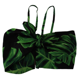 Dolce & Gabbana Black Green Leaf Silk Halter Cropped Top