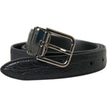 Dolce & Gabbana Black Leather Silver Metal Buckle Belt