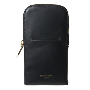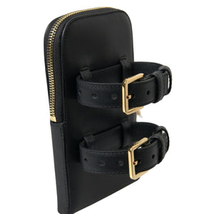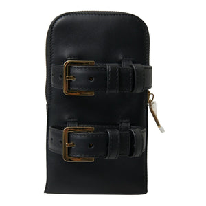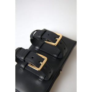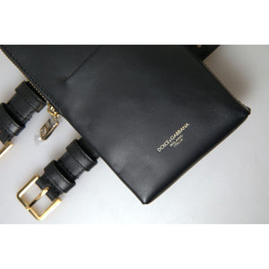Dolce & Gabbana Black Leather Men Purse Double Belt Strap Bracelet Bag