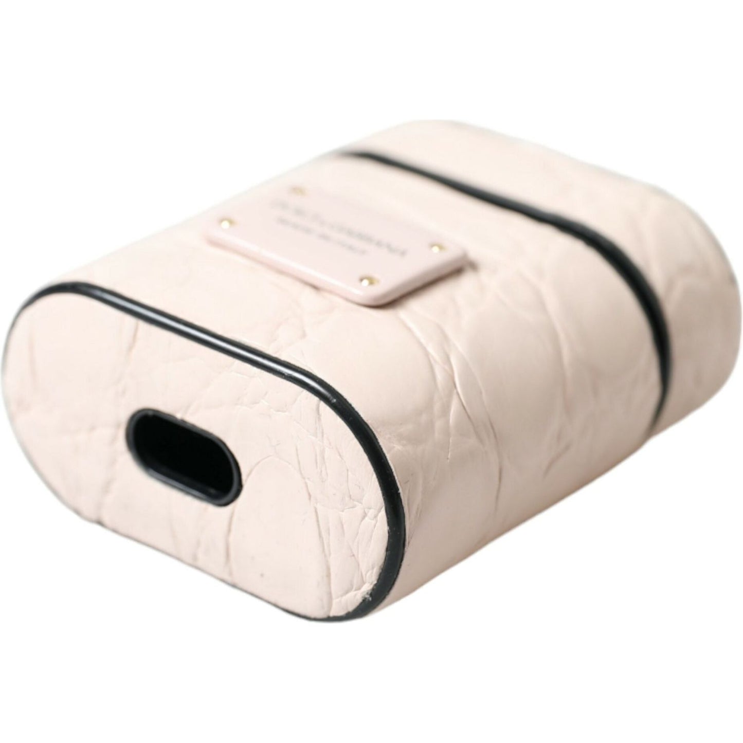 Dolce & Gabbana Light Pink Calf Leather Metal Logo Plaque Airpods Case