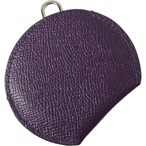 Dolce & Gabbana Purple Calfskin Leather Round Logo Hand Mirror Holder