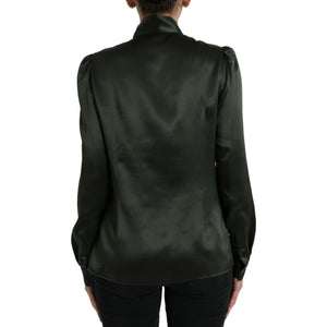 • Dolce & Gabbana Gray Long Sleeves Ascot Collar Blouse Top