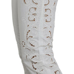 Dolce & Gabbana White Cut Out Cotton Mid Waist Cropped Pants