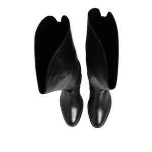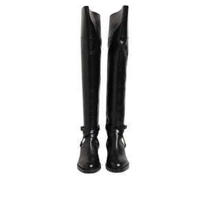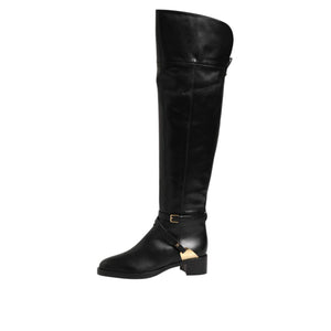 • Elisabetta Franchi Black Leather Buckled High Boots Shoes
