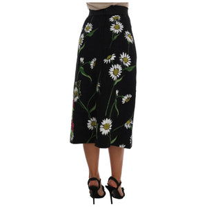 Dolce & Gabbana Black Embellished Daisy Brocade Skirt