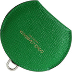 Dolce & Gabbana Green Calfskin Leather Round Logo Hand Mirror Holder