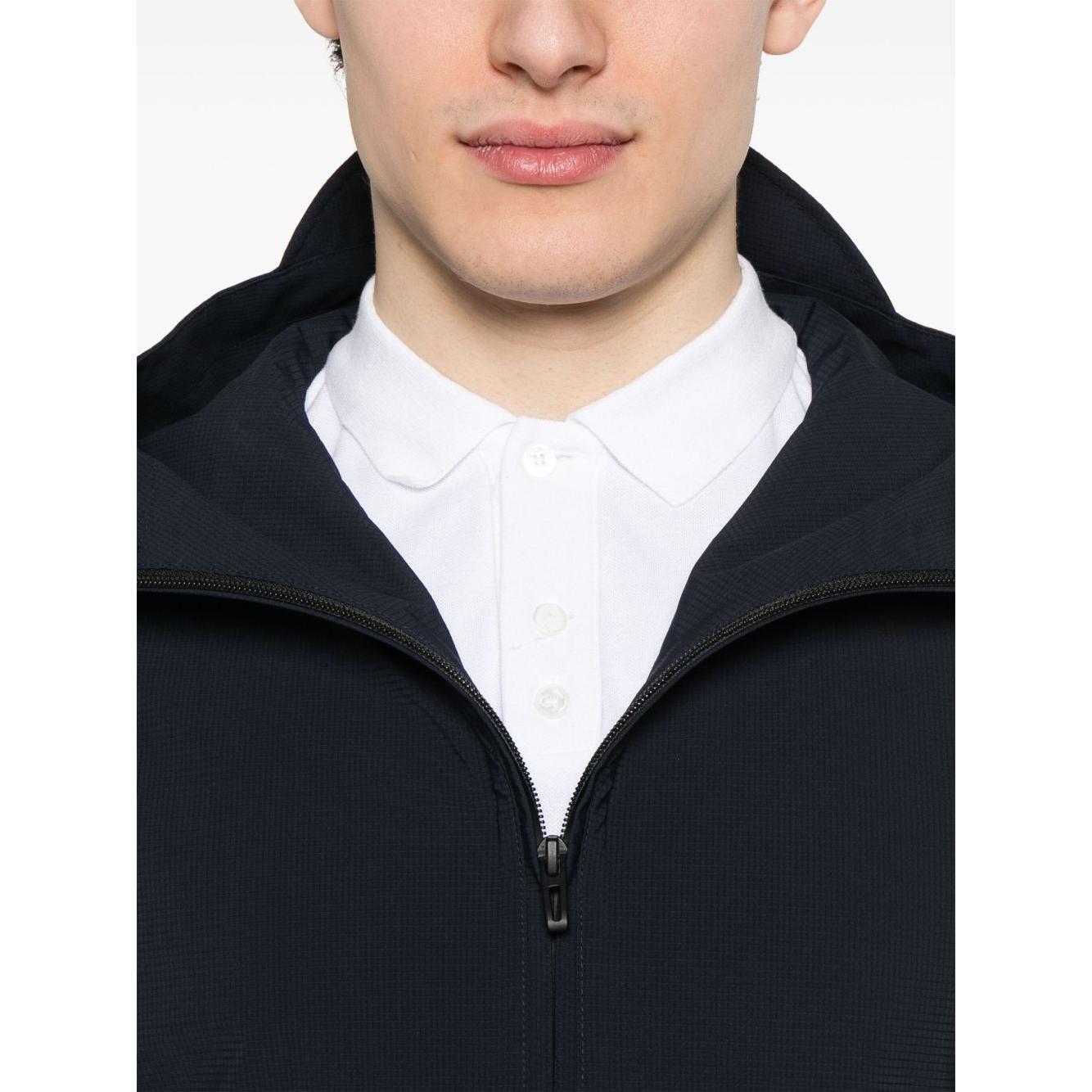navy blue front two-way zip fastening press-stud fastening cuffs two side zip-fastening pockets drawstring hem Nylon hooded jacket Size and Fit - This piece fits true to size. We recommend you get your regular size. Model is 1,84m / 6ft 1in wearing size 48 (IT)