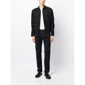 indigo blue stretch-cotton dark wash low-rise slim cut front button and zip fastening classic five pockets Regular fit denim jeans