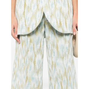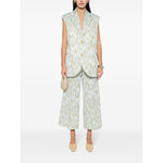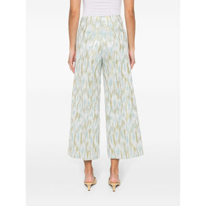 silver-tone/sunflower yellow/sky blue metallic threading patterned jacquard belt loops pressed crease two side inset pockets rear welt pocket cropped wide leg concealed fly and button fastening Printed cropped trousers Size and Fit - This piece fits true to size. We recommend you get your regular size. Model is 1,75m / 5ft 8in wearing size 40 (IT)