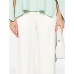 ivory white cady texture belt loops pressed crease two diagonal pockets to the sides rear welt pocket straight leg cropped concealed fly and button fastening Wide-leg trousers Size and Fit - This piece fits true to size. We recommend you get your regular size. Model is 1,75m / 5ft 8in wearing size 40 (IT)