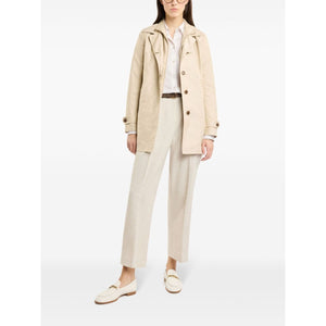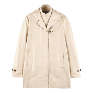 beige hook fastening concealed front zip fastening two side flap pockets buttoned cuffs Popeline morning coat Size and Fit - This piece fits true to size. We recommend you get your regular size. Model is 1,75m / 5ft 8in wearing size S
