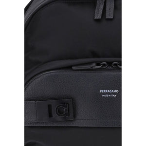 The Ferragamo nylon Backpack combines functionality and style in a modern and refined design. Featuring a top zip closure and adjustable shoulder straps, it ensures practicality and comfort. The signature print on the front adds an iconic touch, while the front zip pocket offers extra space for essentials. The model is completed by two leather buckles with Gancini detail, which recall the distinctive elegance of the maison. Perfect for everyday use with a sophisticated style.