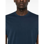 navy blue cotton jersey texture round neck short sleeves straight hem Cotton t-shirt Size and Fit - This piece fits true to size. We recommend you get your regular size. Model is 1,84m / 6ft 1in wearing size M