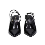 – Composition: 100% calf leather – Inner: Leather – Insole: Leather – Sole: Leather – Pointed toe – Patent effect – Heel 9,5 cm – Adjustable ankle buckle closure – Open back – Made in Italy – Gender: WOMEN –