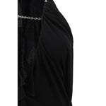 Givenchy’s midi Dress is an elegant and bold piece with a design that enhances femininity. Its halter neckline is embellished with a chain, while the cut-out detail on the front and deep V-neck add a sensual touch. The midi length and wide front slit lend a fluid movement to the look. The sleeveless pattern and double-breasted design with drape on the front complete the look, creating a sophisticated and dynamic silhouette perfect for special occasions.