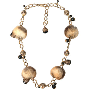 Dolce & Gabbana Gold Brass Leopard Fur Pearl Collier Chain Belt