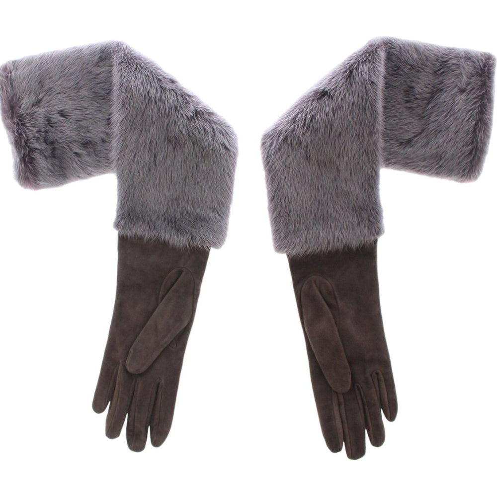 Dolce & Gabbana Gray Mink Fur Lambskin Suede Leather Gloves