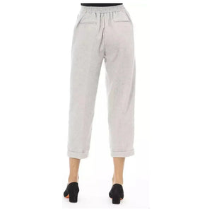 Step into the epitome of chic comfort with Alpha Studio’s meticulously tailored trousers. Crafted for the modern fashionista, these trousers present a harmonious blend of sophistication and convenience with their front pockets and smart welt pockets at the back. Dressed in an elegant gray, they’re an essential staple for any polished wardrobe. Perfect for pairing with a sleek blazer or a casual tee, they’re versatile enough to take you from office hours to after-hours with ease.