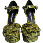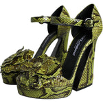 Dolce & Gabbana Green Exotic Leather Ankle Strap Heels Sandals Shoes