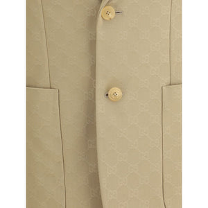 Gucci’s GG jacquard blazer is an elegant and distinctive piece made of jacquard fabric with the iconic GG pattern. Fully lined, it features a single-breasted button closure, notch lapels, a chest pocket and two front pockets. A perfect balance of sartorial tradition and contemporary style.