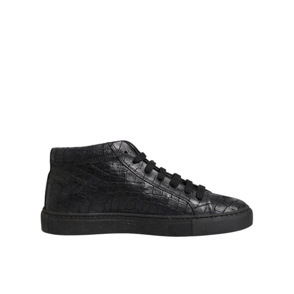 HIDE & JACK Black Leather Lace Up Mid Top Sneakers Shoes