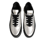 HIDE & JACK Silver Leather Lace Up Low Top Sneakers Shoes